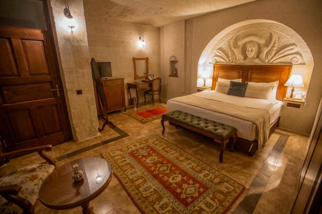 카파도키아 중심부에 위치한 아르테미스 케이브 스위트는 고풍스럽고 현대적인 요소가 결합된 단순하면서도 세련된 디자인을 자랑합니다. 모든 객실은 모양과 크기가 모두 독특합니다. 동굴 방은 수세기에 걸쳐 다양한 정착민에 의해 조각되었으며, 나중에 개조되어 풍부한 유산이 그대로 보존되었습니다. 우리의 돌방은 동굴에서의 경험을 모방하기 위해 고대 카파도키아 스타일의 현지 돌로 지어졌습니다. 테라스에서 일출 때는 웅장한 풍선의 모습을, 일몰 때는 그림 같은 풍경을 감상하실 수 있습니다.