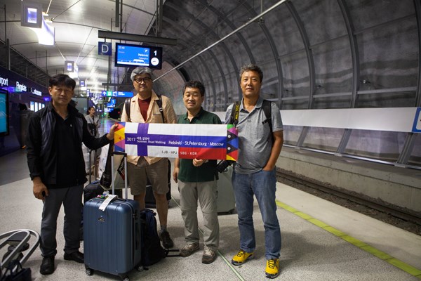 준고속열차인 Allegro로 헬싱키에서 상트페테르부르크 국경을 넘을 쯤 기차안에서의 갑작스런 침묵, 오래전 첩보영화와 사회주의에 대한 선입견과 마피아, 러시안 룰렛 등이 머릿속을 관통하며 우리 일행을 긴장하게 한다. 제국주의적 복장을 한 검표원이 몇 차례 지나가더니, 이어서 허리에 총까지 둘러찬 공안 일행이 검문검색을 꼼꼼히 한다. 여권에 모든 짐을 열어 보이며, 우리의 표정은 백인처럼 하얗게 되었다. 우리에게 무기라곤 그림그리는 스케치북, 빠렛트에 깃다란 붓이 전부다. 잠시 적막이 흐르고 그리곤 우리 그림들을 보더니 금새 표정들이 좋아졌고, 멋짐에 대한 공감대가 이루어졌다! 예술은 또 다른 언어의 형태로 시대의 국경을 넘고 있는 중이다 ~ ~ ~
