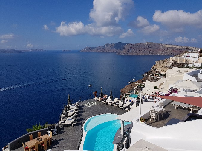 숙소도 너무 고급스럽고, 산토리니 풍경이 너무 멋있어서 호텔 썬베드에 누워만 있어도 좋더라고요.