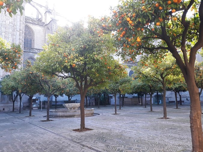 마드리드를 떠나 초고속 열차 Ave를 타고 도착한 곳은 세비야였다. 웅장한 세비야 대성당, 히랄다 탑, 세비야 대학, 스페인 광장 모두 좋았지만 가장 눈길을 끈 것은 세비야 대성당 후원의 오렌지 밭이었다. 대성당 후원에 거의 과수원 수준의 오렌지 밭은 누가 가꾸어 놓은 것일까?  김태희가 플라맹고를 추는 광고로 유명한 스페인 광장, 세비야 엑스포를 위해 만든 스페인 광장의 야경은 너무도 아름다웠다.