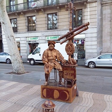 바르셀로나의 또 하나의 명물들은 람블라스 거리의  행위예술가들이다. 갖가지 기묘한 복장을 하고 행위예술을 펼치는 예술가들 갈릴레이 갈릴레오로 분한 예술가와  개구리 피아노 연주를 선보이던 예술가들을 볼 수있다.