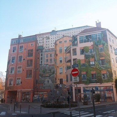프로방스를 떠나 고성의 도시 투르로 가는 길에 갑자기 문제가 발생했다. 투르행 기차가 모두 예약되버려 투르로 갈 차편이 막혀버렸다.  아비뇽 역의  SNCF직원에게 못하는 영어로 사정을 했더니 친절한 직원이 직행편이 아닌 리옹을 거쳐 투르로 향하는 완행 기차편을 알려주었다. 정말 고마운 분이다. 완행 열차답게 3시간 정도의 여정이 6시간으로 늘었지만 그 덕에 우리는 예정에 없던 리옹 시내를 볼 기회가 생겼다. 환승지였기에 오래 있을 수 없어 리옹의 가장 대표적인 관광지인 리옹 벽화만 봤다. 그 규모나 사실적인 모습은 정말 놀라웠다.