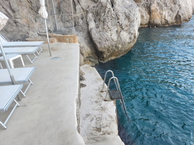호텔에서 연결된 프라이빗 바다(?)는 엘레베이터를 타고 인피니티 풀까지 내려온 다음에,  몇개단을 더 내려오면 됩니다 ㅎㅎ 중간중간 계단과 쉴 수 있는 공간이 있어요 :)