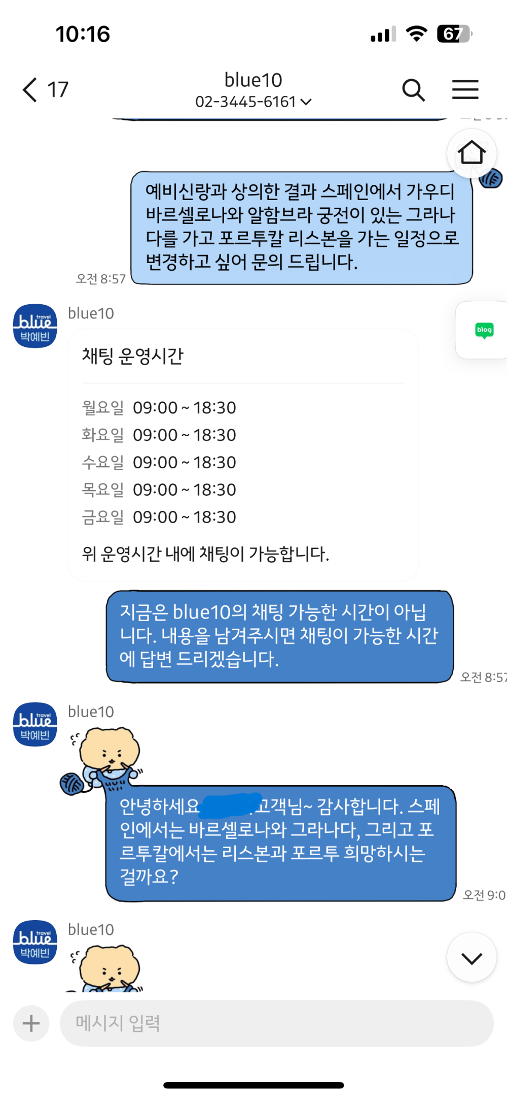 여행사 블루 이용 후기 쓰는건지 모르겠지만 ...