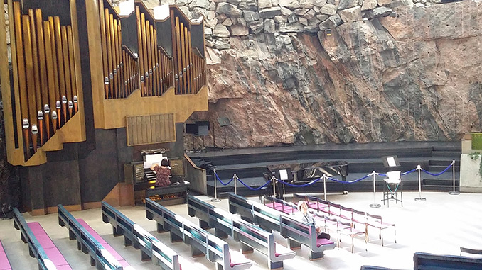 첫 번째 방문한 헬싱키 암석교회에서는 파이프 오르갠을 연주하고 있었다.
